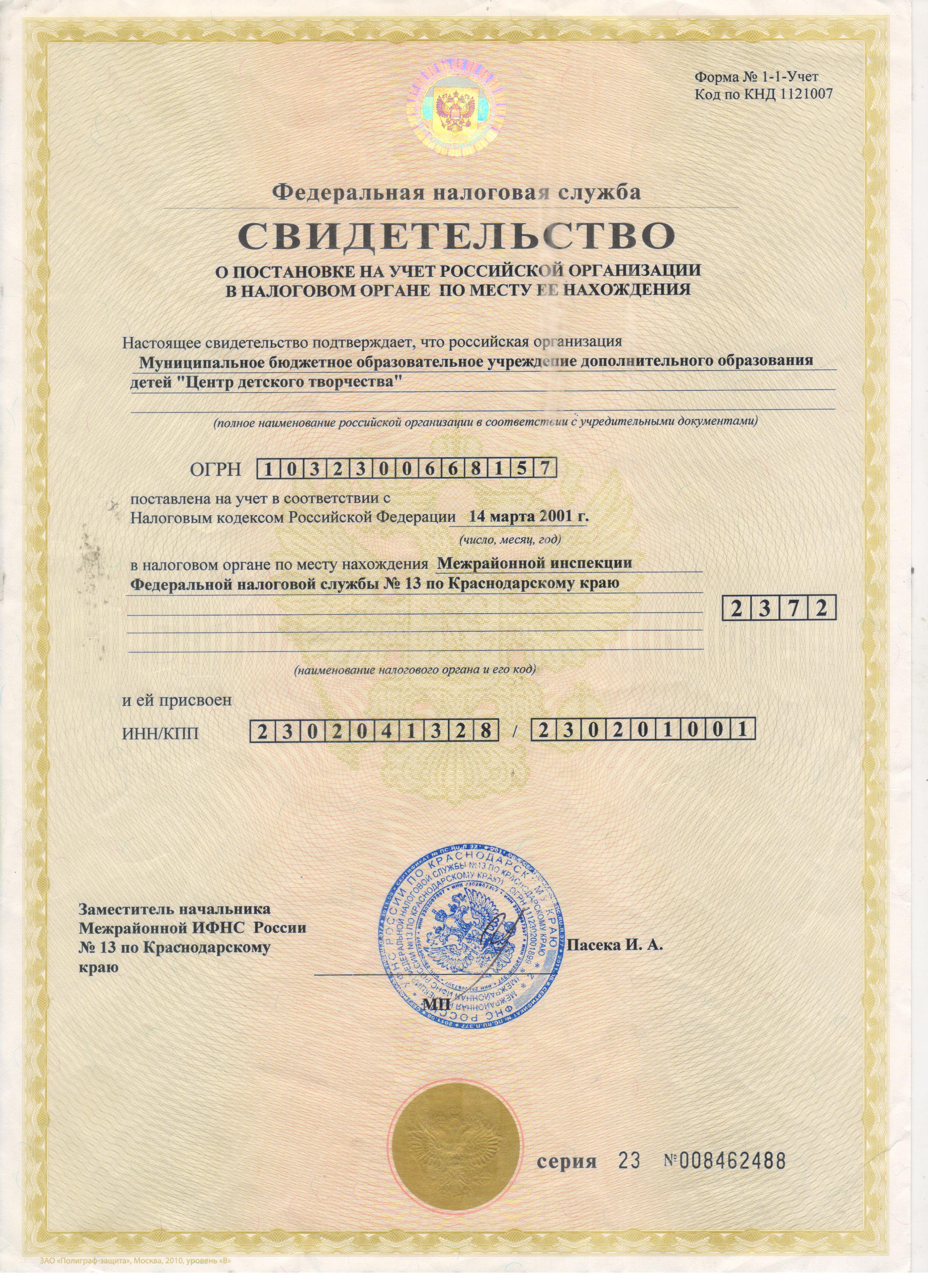 МБУДО ЦДТ осуществляет образовательную деятельность на основании Лицензии Министерства образования и науки Краснодарского края № 07289 от 13.11.2015 г