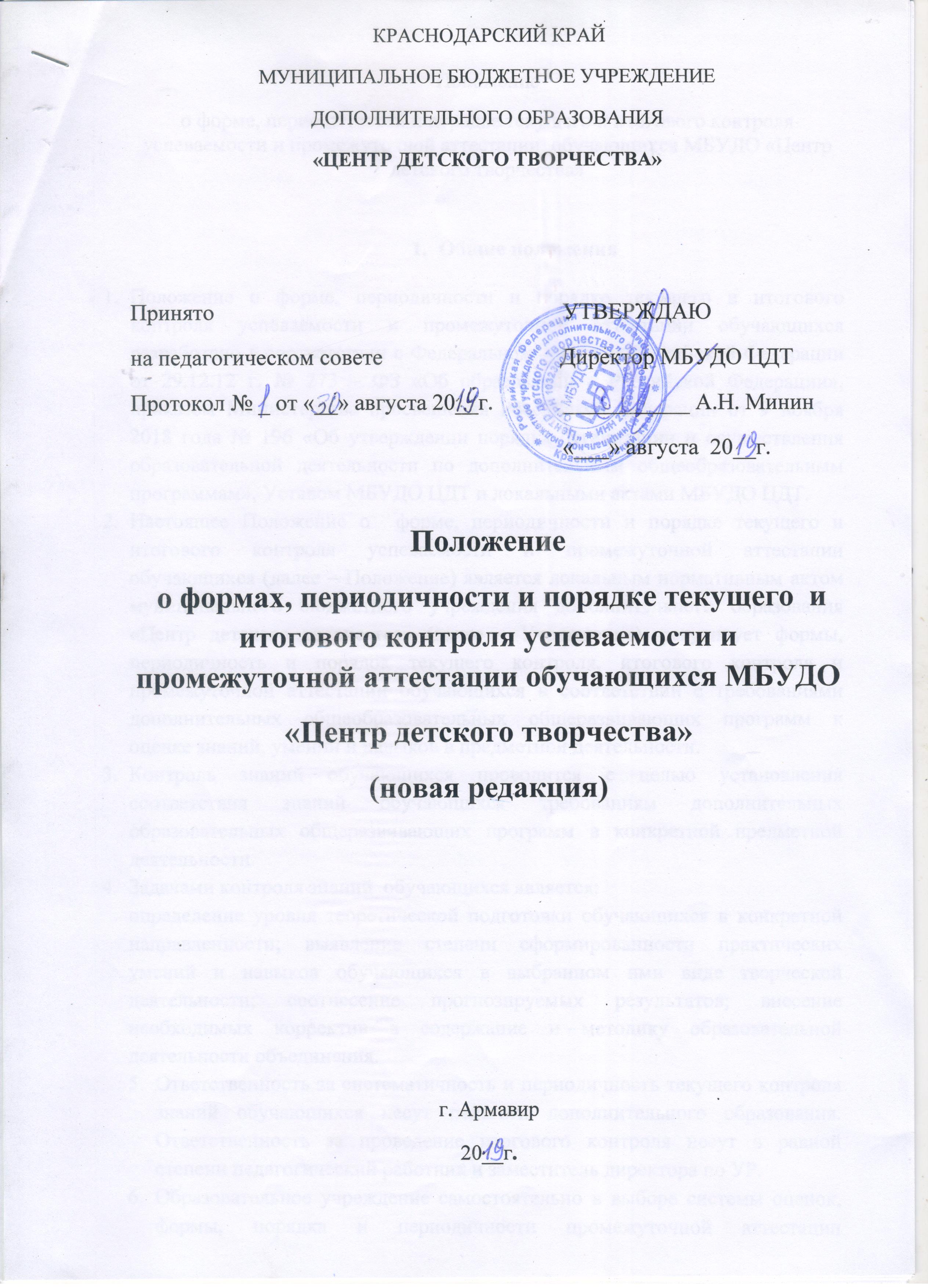 - Положение о текущем контроле знаний воспитанников МБУДО ЦДТ