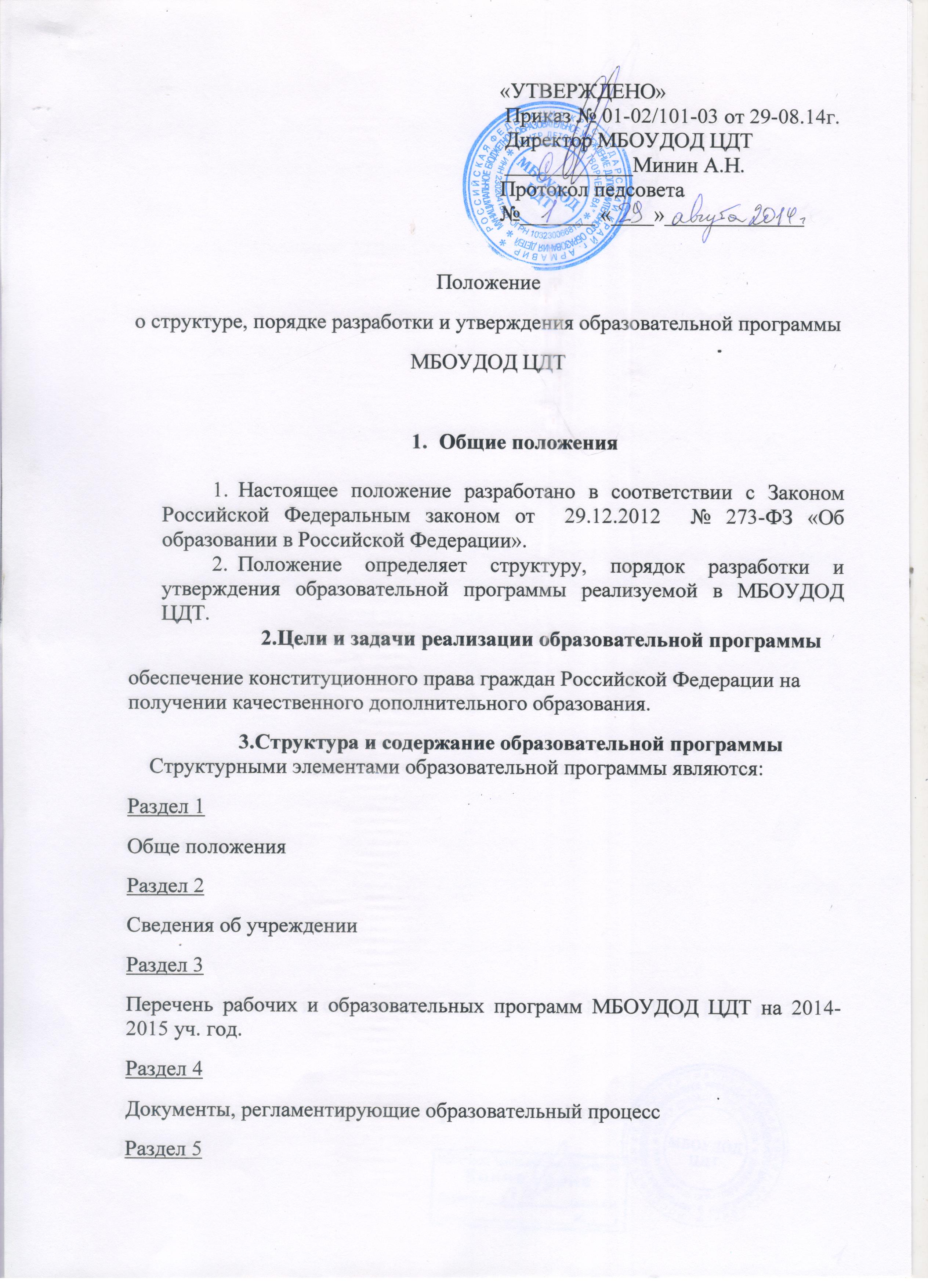 - Положение о структуре, порядке разработки и утверждения образовательной программы МБУДО ЦДТ