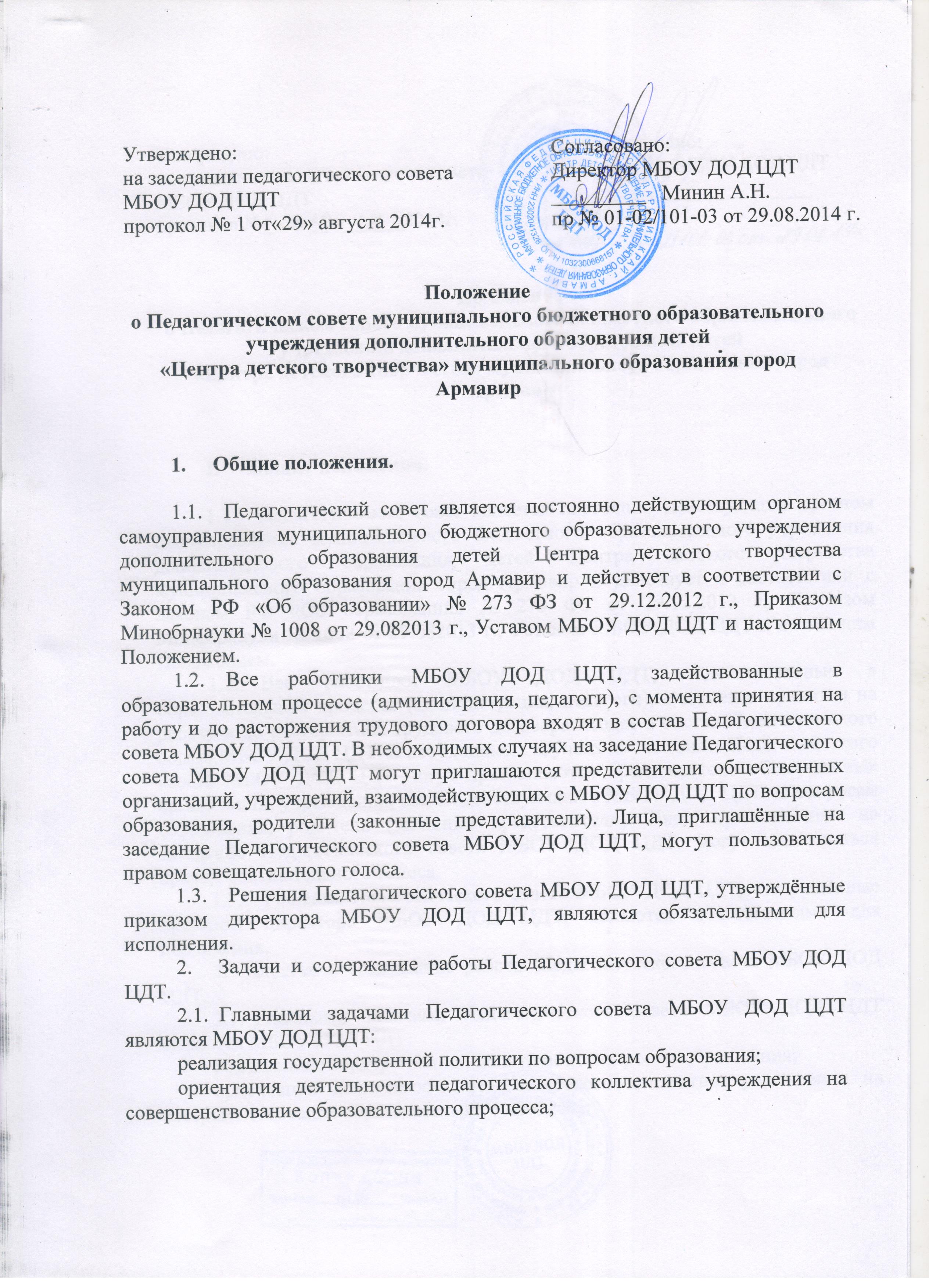 - Положение о педагогическом совете МБУДО ЦДТ