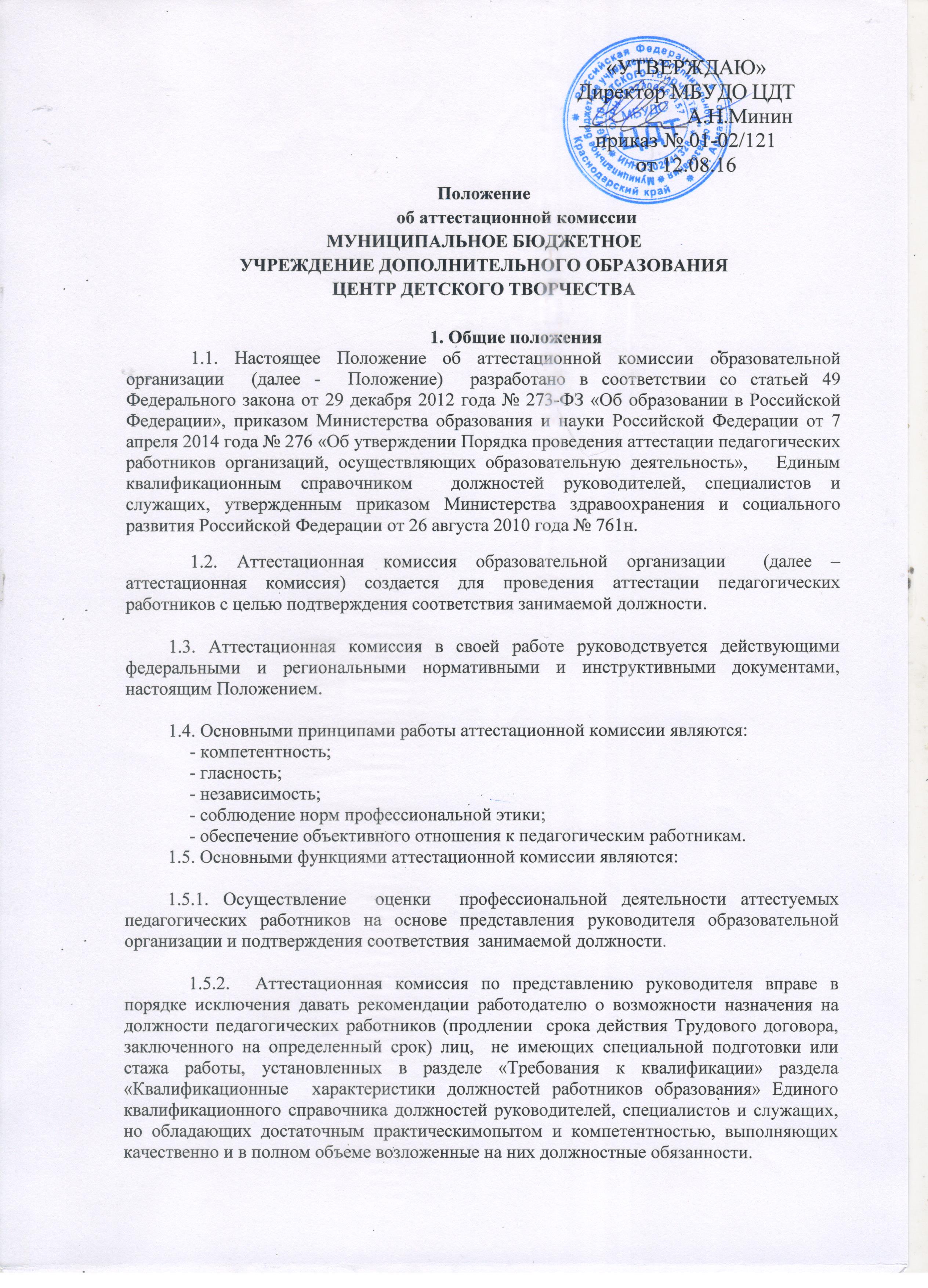 - Положение об аттестационной комиссии МБУДО ЦДТ