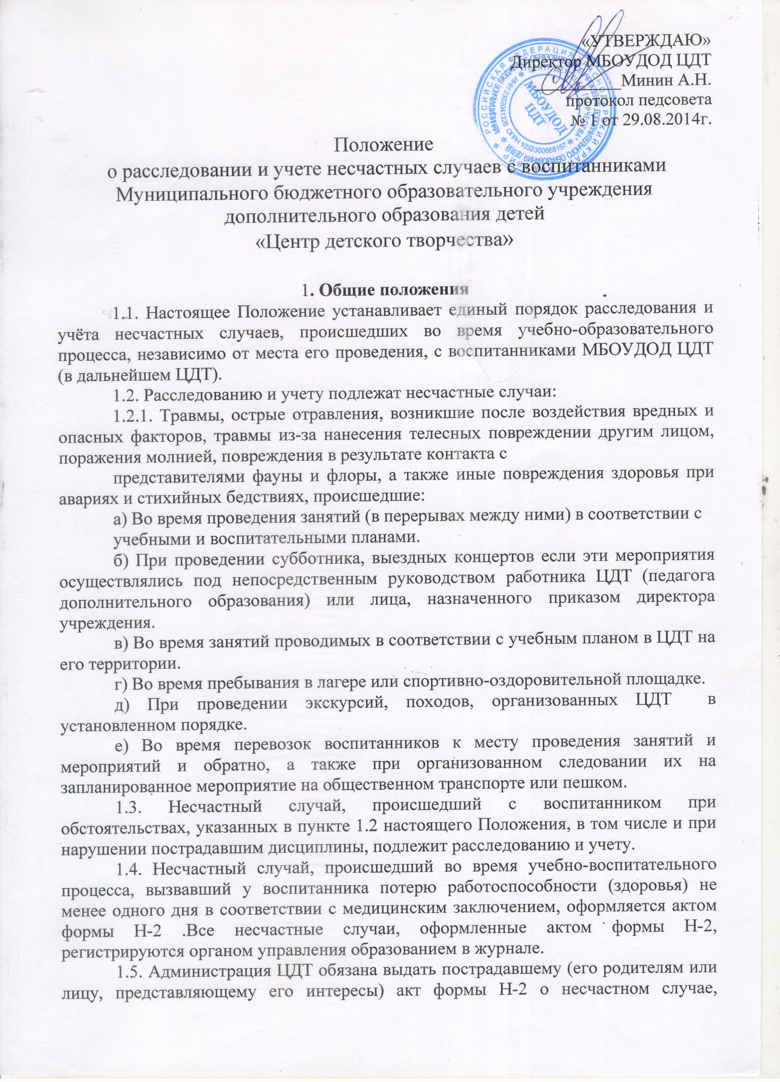 - Положение о расследовании и учёте несчастных случаев МБУ ДО ЦДТ